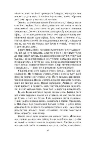 Хто з нас у дитинстві не бачив у завірюсі саней Снігової королеви, не розмовляв з улюбленим олов’яним солдатиком чи не хотів допомогти маленькій Дюймовочці... Славетний датський казкар Ганс Крістіан Андерсен проникає у глибини душі, із самих звичайних речей створює казку й зберігає в ній дитячі мрії про надзвичайні події та цікаві дивовижні пригоди. Чарівні казки стали справжнім подарунком для дітей усього світу. Дорослі ж знайдуть в них повчальні історії й для себе. Але для читача будь-якого віку «Казки» Ганса Крістіана Андерсена залишаться назавжди привабливим своєю простотою та безмежною добротою.