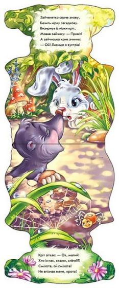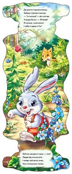 Завдяки яскравій, барвистій книжечці у вигляді кумедного зайчика з рухомими лапками дитина дізнається про лісових тварин, ознайомиться з навколишнім світом і радітиме новим враженням.