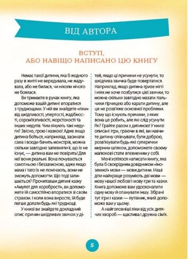 Немає такої дитини, яка б жодного разу в житті не вередувала, не жадувала, або не билася, чи ніколи нічого не боялася. Ця книга допоможе дитині впоратися з труднощами. У ній батьки знайдуть «ліки» від шкідливості, впертості, жадібності, сором'язливості, жорстокості та інших «недугів». Чим лікують такі «недуги»? Звичайно, грою і казкою!