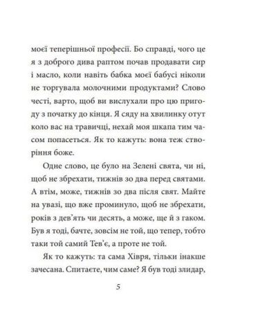 Шолом-Алейхем (1859—1916) — єврейський письменник, життя якого було тісно пов’язане з Україною. Тож свого найулюбленішого героя — шляхетного і простакуватого, побожного і сповненого суперечностей, знавця людей і поціновувача природної краси — Тев’є-молочара автор поселив в українському селі тодішньої Російської імперії. Нелегко ведеться працьовитому батьку великої родини, в якій аж семеро дочок та й долі їхні не можна назвати щасливими. Проте Тев’єві оповіді-монологи сповнені оптимізму й доброти, пересипані дотепами. Не зраджує герой своєму правилу: якщо не вистачає сліз, то треба сміятися, і тоді, коли розповідає, як царські можновладці змушують його залишити рідну домівку.
