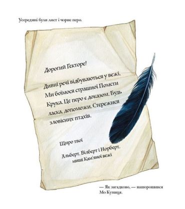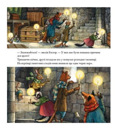 У другій книзі від талановитої Астрід Шекелс “Гектор Лис і помста Крука”, Гектор отримує відчайдушне прохання допомоги від мишей Кам’яної Вежі. Вони побоюються, що жахлива помста Крука стане реальністю. Гектор і його друзі вирушають дощової ночі через Зелений гай, сподіваючись дістатися до Кам’яної Вежі вчасно, щоб захистити своїх друзів від стародавнього прокляття, яке, можливо має здійснитися.