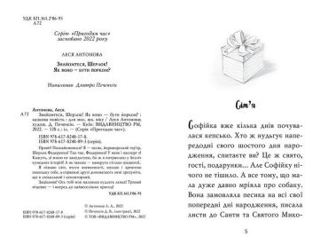 Привіт! Познайомимося? Я – песик, йоркширський тер’єр, Шерлок Федоренко! Так-так, Федоренко! У мене і паспорт є! Кажуть, зі мною не занудьгуєш, бо ж я потрапляю у безліч кумедних історій! А як інакше – навкруги стільки цікавого!.. Я пізнаю світ, вчуся впевненості, шукаю і зрештою знаходжу себе, а справжні друзі допомагають мені зрозуміти, що я унікальний і неповторний.