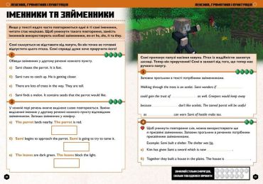 Ваша дитина вирушить у кілька пригод дивовижним світом Minecraft, вдосконалюючи знання англійської мови в процесі. Вирушайте у пригоду світом Minecraft завдяки посібнику! Ігрові персонажі, Том і Єва, які зустрінуться читачеві на сторінках посібника, виконують непрості місії і відважно шукають скарби... повсякчас відбиваючись від надокучливих мобів!Чому варто придбати: