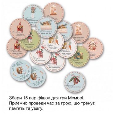 3. Мемо гра - останнє завдання - зіграи? в мемо гру. Фішки для якоі? ви знаходитимете 30 дні з у кожніи? коробочці. 15 пар новорічних картинок для гри!
