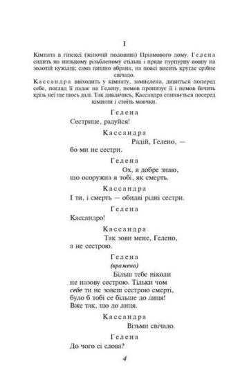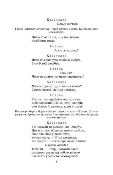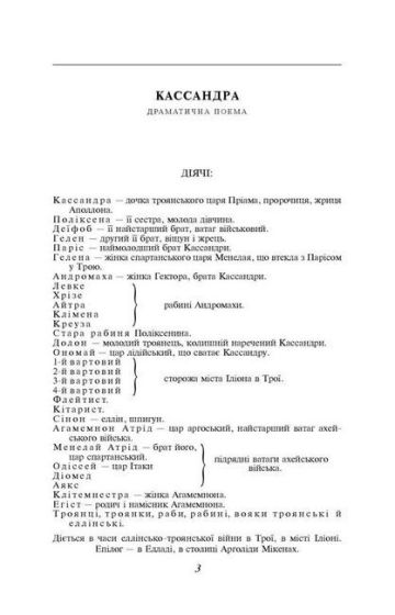 Ця книжка присвячена троянській пророчиці Кассандрі. Лесю Українку цікавила саме особистість віщунки, її психологія. Кассандрі притаманні почуття звичайної людини: вона сумнівається і вагається, прагне віднайти істину, страждає і підкоряється своїй долі.