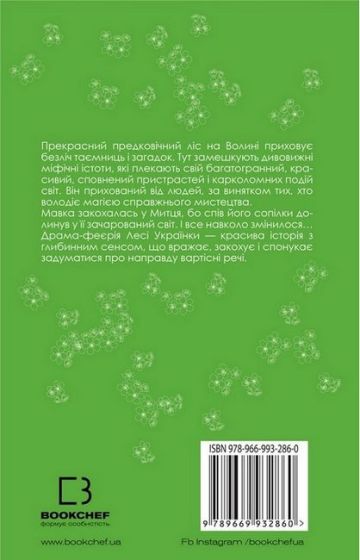 Прекрасний предковічний ліс на Волині приховує безліч таємниць і загадок. Тут замешкують дивовижні міфічні істоти, які плекають свій багатогранний, красивий, сповнений пристрастей і карколомних подій світ. Він прихований від людей, за винятком тих, хто володіє магією справжнього мистецтва. Мавка закохалась у Митця, бо спів його сопілки долинув у її зачарований світ. І все навколо змінилося…