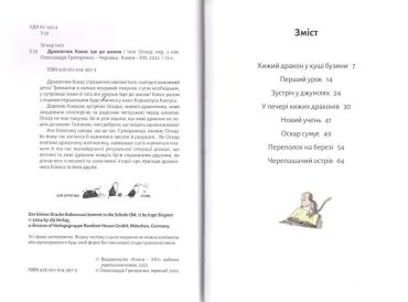 Але Кокосику шкода, що це так. Супершкода, вважає Оскар, бо йому так хотілося б навчитися писати й рахувати… Як Оскар вчитиме драконячу математику, найкраще з усіх навчиться плавати й під час відчайдушної рятувальної операції доведе, що вогняні та хижі дракони можуть бути справжніми друзями, ви дізнаєтеся із веселої та захопливої історії про пригоди дракончика Кокоса та його друзів.