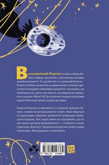 Родина Мартина знайомиться із зоряним кур'єром Лучано, схожим на витрішкуватого голуба. Вони беруться за надскладне завдання: допомогти прибульцю повернутися додому. Але люди навіть не підозрюють, що на них чекає ще одне випробування – ні багато, ні мало порятунок Всесвіту. Подолати всесвітню халепу може тільки диво. Або ерудиція та кмітливість.