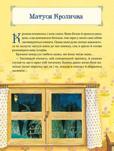 «Матусю, прочитай нам казку на добраніч!» — щовечора просять ведмедики та кроленята. І їхні матусі залюбки дістають чудові книжечки й починають читати… У цій книжці зібрано чимало веселих, дотепних, чарівних історій про лісових звірят, із якими трапляються неймовірні пригоди в найсолодший час перед сном.