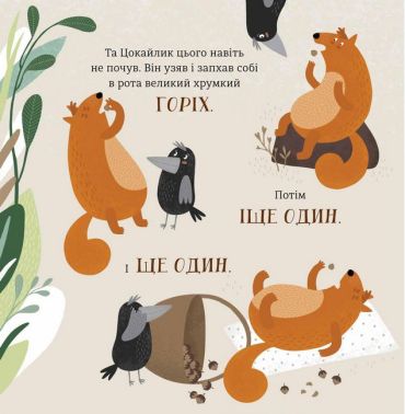 Мама-білка назбирала кошик горіхів на одну вельми особливу подію. Взяти не спитавши — негарно, але ж нічого не станеться, якщо ти трошки скуштуєш. Тільки горіхи так швидко закінчуються, а зізнатися в тому, що ти зробив, так страшно!