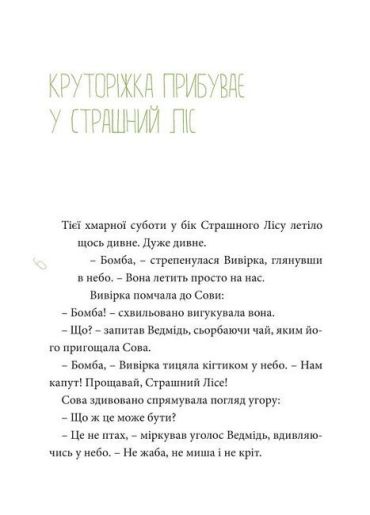 Однієї нічим не примітної суботи мешканці Страшного Лісу займалися своїми звичними справами: хтось перелічував горішки, хтось дрімав, а дехто скаржився на життя. Ані Їжак, ані Лісовий Сонь, і навіть мудра Сова не підозрювали, що до них незабаром прибуде несподівана гостя, а разом із нею – великі й маленькі пригоди, з яких народиться справжня дружба.