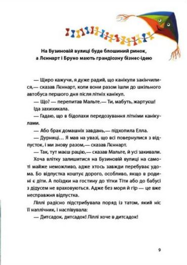 Ця книга розповість вам про пригоди п’ятьох друзів, які мешкають в одному будинку на Бузиновій вулиці. Кожен новий день приносить їм веселощі, цікаві пригоди й життєві уроки. А ще маленькі й великі радощі, із яких і складається щасливе дитинство: запускання повітряних зміїв, порятунок їжачка, вирізання ліхтарика з гарбуза… Розгортай книгу та насолоджуйся затишними історіями про справжню дружбу, доброту та взаємодопомогу.