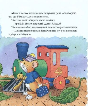 Мама і тато на кілька днів їдуть, а мишеня Тім повинен пожити у бабусі з дідусем. Тім не хоче. Йому здається, що там не буде нічого цікавого. Але, звичайно, це не так. І бабуся з дідусем неодмінно придумають, чим зайняти онука.