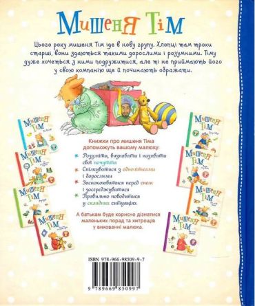 Серія книг про кумедного і милого мишенятка Тіма допоможе малюкам розуміти, визнавати й називати свої почуття, навчитися спілкуватися з однолітками і вирішувати складні ситуації.