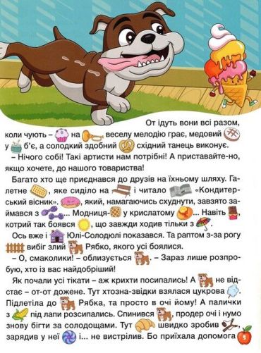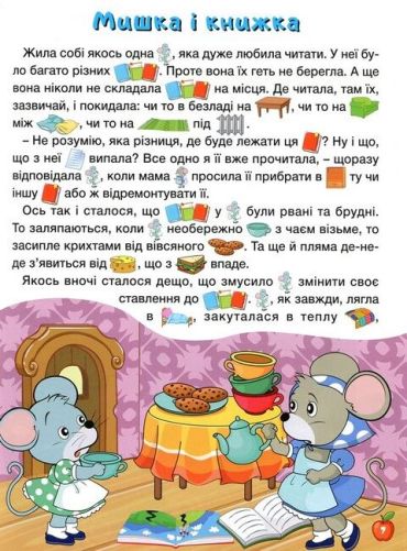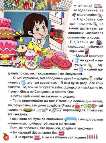 У цiй книзi зiбранi цiкавi, повчальнi й добрi казки, якi змусять дитину замислитися, звернути увагу на свою поведiнку та вчинки й зробити певнi висновки. Малюнки, якi в текстi в деяких мiсцях замiняють слова, дозволять дитинi збагатити словниковий запас та зроблять процес читання бiльш цiкавим.