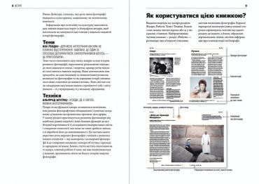 Дизайн книжки і продумана структура допомагає читачам легко зорієнтуватися у ключових жанрах, митцях, темах і техніках й оповідає, як, чому та коли певні фотографії справді змінили світ.