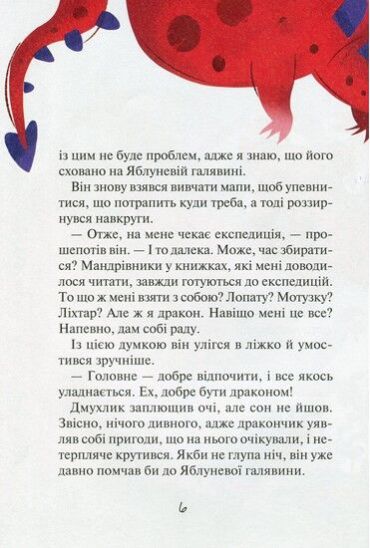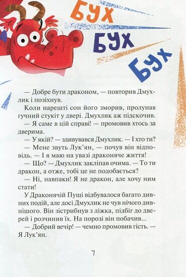 Доброму королю Головку потрібна допомога. І тут ніяк не обійтися без дракончика Дмухлика. Той уже обмірковував подробиці експедиції, аж тут як сніг на голову — гість, у якого свої плани. Він жадає… навчання! Крокодил Лук’ян хоч і не має крил і не дихає вогнем, та все ж надумав стати справжнім драконом. А кому ж його наставляти, як не юному, але вже досвідченому знавцю дракології Дмухлику?!