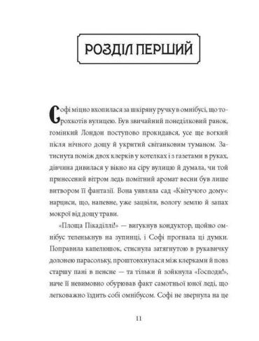 На початку ХХ століття в оповитому туманами Лондоні стається неабияка подія: відкривається величезний універсальний магазин багатія Едварда Сінклера. Ще до відкриття він опиняється в центрі здогадок, чуток і підвищеної уваги. Бо такої розкоші й різноманіття товарів, здається, Лондон досі не бачив. У цей самий сам юна Софі Тейлор, дівчина із колись багатої родини, а тепер кругла сирота, змушена шукати роботу. Чи варто описувати її радість, коли вона проходить конкурс на посаду продавчині? Та дівчині доведеться позмагатися з неабиякими труднощами. І насмішки й глузування товаришок по роботі тут виявляються не найстрашнішими. Напередодні відкриття чудового універмагу звідти викрадають унікальну колекцію коштовностей, яку власник збирався продемонструвати на виставці з особливої для нього нагоди. Окрасою колекції був механічний горобець. Прикрашена численними коштовними каменями пташка витьохкувала щоразу іншу мелодію. І ось Софі опиняється під підозрою, адже її того злощасного вечора бачили в залі з коштовностями. Ба більше, поруч із розбитою вітриною знаходять шпильку для волосся, яка належить дівчині. Тепер завдання Софі та її нових друзів знайти справжнього зловмисника...