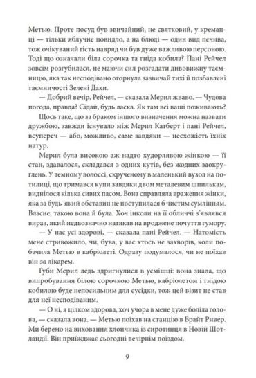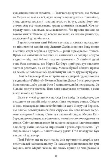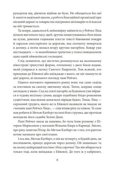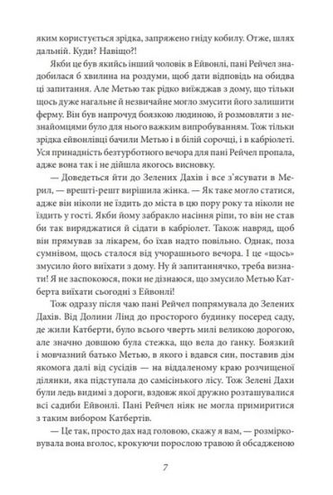 Канадська письменниця Люсі Мод Монтгомері (1874-1942) дебютувала в літературі, розповівши напрочуд просту історію. Вона починається з того, що немолоді й самотні Метью та Мерил Катберти вирішили взяти з притулку хлопчика, щоб він допомагав їм по господарству. Однак сталося так, що на фермі опинилася рудоволоса, всипана веснянками дівчинка Енн Ширлі. Знадобився час, щоб жителі Ейвонлі, що на острові Принца Едуарда, відкрили їй серця. Зате читачі полюбили героїню «Зелених Дахів» одразу й назавжди. Книжка принесла авторці-початківцю нечувану славу й надихнула до написання ще семи. Всі вони вийшли у видавництві «Фоліо».