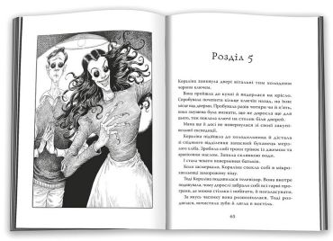 Щось дивне коїться у новому будинку Кораліни. Дивина полягає ані в тумані чи котові, який, здається, стежить за нею, ані в знаках небезпеки (в якій опинилась Кораліна), що міс Примула та Форсібіллі (нові сусідки Кораліни) розгледіли в чаїнках. Справжня дивина - "інший дім" за старими дверима у вітальні. "Інші мама й тато" з чорними очами-ґудзями і білосніжно-паперовою шкірою чекали на Кораліну. Тепер вони хочуть, щоб вона залишилася з ними. Назавжди. Кораліна знає: якщо вона увійде у ті двері, то може вже ніколи не повернутися назад.