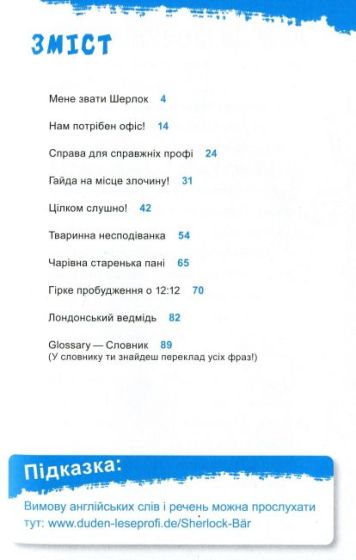 Ця захоплива книжка — справжній скарб для батьків і дітей. Детективні пригоди, цікаві головоломки, вивчення перших слів і висловів англійською для читачів молодшого шкільного віку, а також справжня дружба й неймовірні пригоди — усе це на її сторінках.
