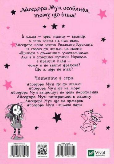 Її мама — фея, тато — вампір, а вона схожа на них обох. Айседора хоче взяти Рожевого Кролика із собою до школи на свято «Прийди з домашнім улюбленцем». Але в її старшої кузини Мірабель є кращий план — чому б не взяти дракона?