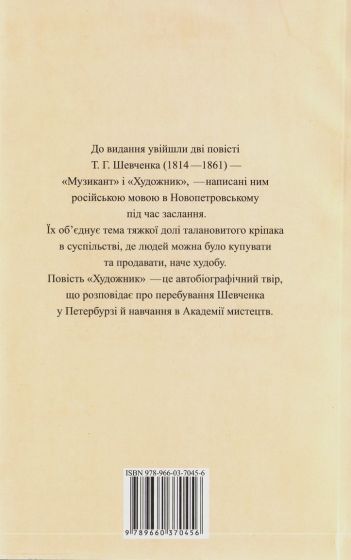 наприкінці 1854 р. і початку 1855 р. Т. Р. Шевченко пише повість "Музикант" за оригінальним сюжетом. Твір присвячено кріпосної інтелігенції. "Художнидо" - автобіографічна повість Тараса Шевченка написана російською мовою 25 січня (4 жовтня) 1856 року. Автор продовжує розробляти тематику долі талановитого кріпака, розпочату ним у повістях «Варнак» і «Музикант».