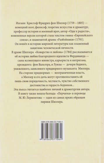 У книгу також увійшла балада «Рукавичка» в перекладі М. Ю. Лермонтова — один з найяскравіших зразків лірики Шиллера.