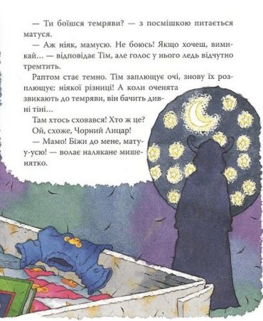 Навіть такі хоробрі мишенята, як Тім, іноді чогось бояться: темряви, юрби, води, грому або лишитись на самоті, загубити маму. Тіма лякає те ж саме, що й усіх дітей. Але він має напрочуд гарну матусю: вона знає, як прогнати страх і заспокоїти свого синочка.Книжки про мишеня Тіма допоможуть вашому малюку: