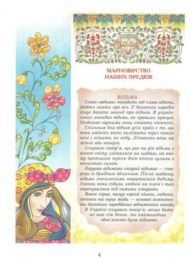 З вікових глибина зринає перед нами фантастичний світ легенд, казок і міфів України. Книга дарує своєму юному читачеві найкращі з них. Усі вони захоплюють своєю дотепністю, витонченістю, мовним багатством. Широке коло фантастичних героїв постає перед нами: відьми й вовкулаки, вовкуни і змії, водяники й русалки, ворожбити і знахарі, вурдалаки й дідьки. Але, які б не були складні ситуації, перемагає наш дотепний і щирий народ з його багатою фантазією і мудрим гумором. Чимало легенд язано з нашими уславленими Карпатами, природою України і повсякденним буттям.