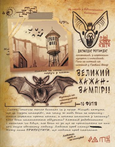 Ви тримаєте у руках заповітний щоденник автора, кольоровий, на 288 сторінках, повний секретів, чудовиськ і загадок, що про них раніше й не згадувалось. І все це відбувається в сонному містечку Ґравіті Фолз. Дізнаєтесь ви і про трагічну історію Форда, про місцезнаходження Блендіна, а також про те, що це за Вимір 52 і чим можна приманити "шлункоморду качку".