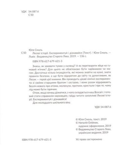 Знаєте, як заховати туман у склянці? А як перетворити яйце на гумовий м’ячик? Для цього не обов’язково бути чарівником. Достатньо кілька інгредієнтів, які можна знайти на кухні, знати правила безпеки, а ще бути відкритими до світу та допитливими, як Лесик — герой цієї книжки. Він проводить цікаві хімічні експерименти зі своїми старшими братом і сестрою, і вони разом відкривають безліч нового про атоми, молекули, протони, кристали і про те, чому лід може бути гарячим.