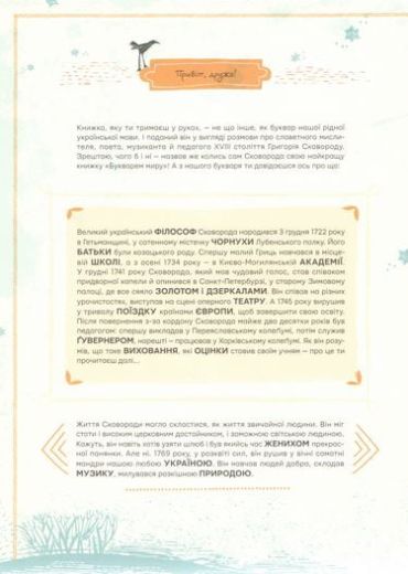 Книжка «Сковорода від А до Я» продовжує серію абеток-енциклопедій для родинного читання і розповідає про великого мрійника, мандрівного філософа та педагога.