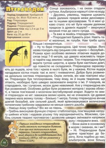 На сторінках видання ваша дитина зустрінеться з найбільшими і найменшими, найшвидшими, найнебезпечнішими і найнезвичайнішими динозаврами нашої планети.