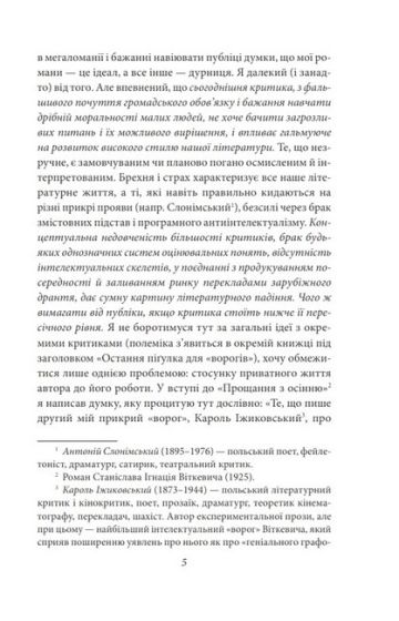 Ґенезип Капен — син власника броварні, наївний хлопчина, який піддається переконанням видатних мислителів про нездоланну безсенсовість буття, що й призводить його до божевілля... У видавництві «Фоліо» вийшов друком роман С. І. Віткевича «Прощання з осінню».