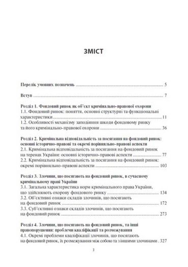 У монографії здійснено комплексне дослідження кримінальноправової охорони фондового ринку, вироблені рекомендації, врахування яких утворює цілісність кримінальноправової охорони фондового ринку. Окрема увага приділяється особливостям визнання фондового ринку об’єктом кримінальноправової охорони, кримінальноправовим аспектам механізму заподіяння шкоди фондовому ринку та його основним структурним елементам, розглядаються історично та порівняльно правові аспекти кримінальної відповідальності за посягання на фондовий ринок, виділяються найбільш типові й нетипові форми таких посягань та заходів кримінальноправового характеру, що застосовуються за їх вчинення. Крім цього, вирішуються основні проблеми конкретизації об’єктивних і суб’єктивних ознак їх складів, а також досліджуються основні питання, пов’язані з кваліфікацією таких злочинів, їх розмежуванням між собою, а також з іншими правопорушеннями. Розглядаються шляхи вдосконалення кримінальноправової охорони фондового ринку в Україні, пов’язані з формуванням основних напрямів нормативної регламентації кримінальної відповідальності за злочини, що посягають на фондовий ринок, та напрямів правозастосовчої практики.