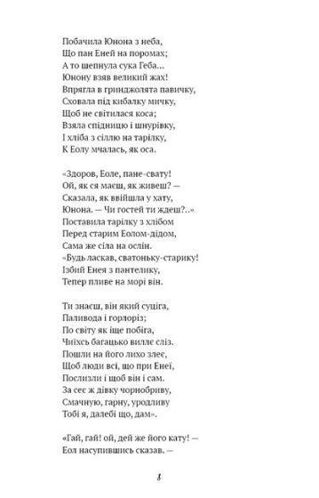 Еней увірвався в український культурний простір на порубіжжі XVIII–XIX століть і змінив геть усе. На те він і Герой! Виявилось, античний персонаж може мати вигляд і діяти як український козак, а повір’я, традиції, гумор, багата народна мова — наповнити класичний верґіліївський сюжет новими сенсами! Іван Котляревський прийняв виклик тогочасного суспільства і виграв! А разом із ним і читачі, які уже майже 200 років мають змогу насолоджуватися яскравими образами, карколомними пригодами і нетривіальним гумором.