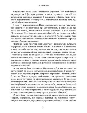 Живучи в сучасному світі, не можна оминути отрут і патогенів, які загрожують нашому здоров’ю ще до народження. Вони продовжують впливати на нас щодня, коли ми з ними стикаємося у повсякденному житті. Очищення організму від токсинів є життєво важливим інструментом для боротьби з цим тягарем цивілізації, однак за умови, що ви робите це правильно. Ентоні Вільям зібрав величезну кількість інформації в одну книгу, де ділиться секретами різних видів очищення. Він пропонує як загальні методики, так і протоколи для конкретних потреб вашого організму та проблем зі здоров’ям.