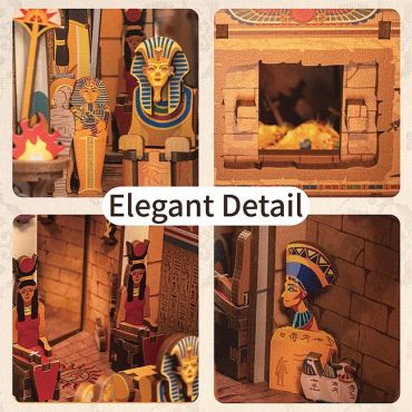 Book Nooks (Бук Нукс) перекладається як “книжкові закутки” – це спеціальні вкладки, які ставляться на полиці між книгами. Ці вкладки створюють "віконце" в чарівні світи, що можуть відсилати до якого-небудь твору або просто прикрашати полицю. “Пригода в Єгипті” – це один з найбільш інтригуючих і захопливих наборів, який привертає увагу своїми яскравими елементами та атмосферою древнього Єгипту.