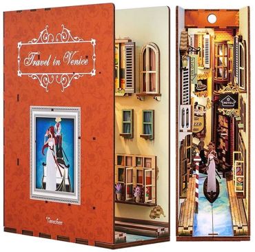 Book Nooks (Бук Нукс) перекладається як “книжкові закутки” – це спеціальні вкладки, які ставляться на полиці між книгами. Ці вкладки створюють "віконце" в чарівні світи, що можуть відсилати до якого-небудь твору або просто прикрашати полицю. “Подорож до Венеції” – це один з найбільш мальовничих і захопливих наборів, який привертає увагу своїми яскравими деталями та атмосферою венеціанських каналів.