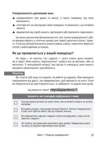 Техніки, що представлені в цій книзі, допоможуть підлітку легше перейти в доросле життя. Прочитайте цей робочий зошит навичок ДПТ для підлітків, щоб навчитися: ефективно справлятися зі стресом, сильними почуттями й емоціями; керувати міжособистісними стосунками; долати відмови й невдачі. Підліток може за його допомогою розвинути усвідомленість, щоб залишатися зосередженим, отримати життєві навички для набуття впевненості та стійкості. Також у книжці представлено навички управління гнівом, методи для прийняття себе та поточної ситуації.