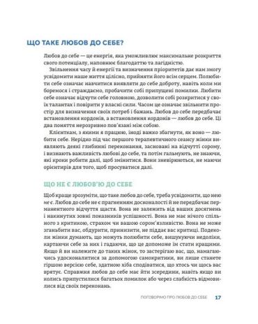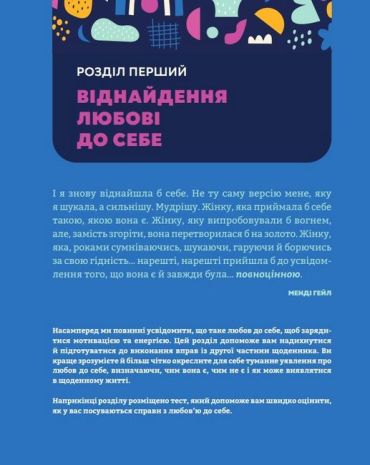 Ефективні техніки. Надихайтеся цитатами та афірмаціями, виконуйте дієві вправи й послуговуйтеся порадами, розробленими на засадах позитивної психології та концепції усвідомленості, а також іншими методами віднайдення любові до себе.