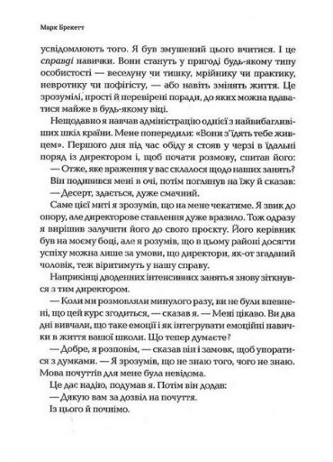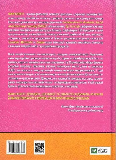Наші емоції впливають на самопочуття, стосунки, самореалізацію. Переважно саме нерозуміння природи власних почуттів, сором за надмірну емоційність чи, навпаки, скутість заважає нам стати щасливими. За 25 років роботи Марк Брекетт розробив напрочуд ефективну систему покращення життя дітей та дорослих ЛІДЕР, яка полягає в тому, що емоції можна навчитися використовувати, і тоді вони допомагатимуть, а не заважатимуть нашому благополуччю. Цю систему застосовують у тисячах шкіл. Доведено, що завдяки їй зменшуються стрес та вигоряння, покращується шкільний клімат та підвищується успішність. У цій книжці Брекетт ділиться своєю перевіреною стратегією з читачами.