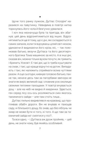 Літо 1928 року… Містечко Ґрінтаун… Як цікаво жити, коли тобі лише 12… Можна ночувати у дідовій вежі, бігати у тенісних туфлях-легкоступах, вести облік повсякденних подій і нових відкриттів, побачити справжню Машину щастя, а ще… а ще… За літо потрібно встигнути так багато! Та найголовніше — приготувати кульбабове вино, так багато кульбабового вина, аби вистачило на цілу зиму. Адже те вино і є «спіймане і закорковане в пляшках літо». Сповнене чарівних пригод літо 1928-го — прекрасна пора для дванадцятирічного Дуґа та його рідних і друзів — чекає на вас на сторінках повісті «Кульбабове вино».