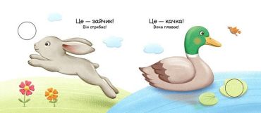 - Містить тематичні малюнки та підписи до них з елементами звуконаслідування, що сприятиме вивченню нових слів та знайомству з навколишнім світом.