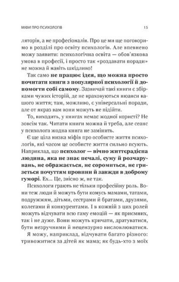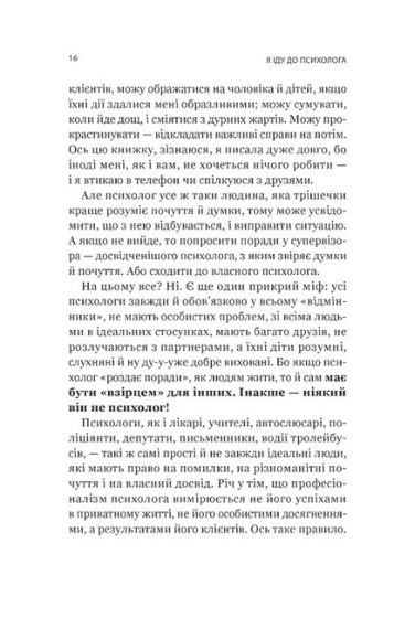 Катерина Гольцберг, психологиня з двадцятирічним досвідом, розповідає про все, що має знати людина, яка переступає кабінет психолога і хоче отримати реальну допомогу. Описує процеси роботи, розвінчує міфи, підказує, як обрати тип психологічної допомоги, як формувати запит. Від цих знань залежить те, наскільки якісною буде допомога.