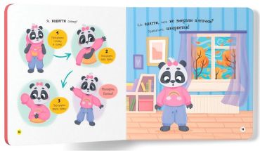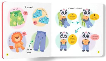 Ця інтерактивна книжка підкаже батькам, як в ігровій формі допомогти дитині навчитися вдягатися без вередувань. Разом з милим героєм ваш малюк засвоюватиме важливі навички, запам’ятає правильну послідовність дій: щоб одягти штанці, треба просунути одну ніжку, потім іншу, а потім піднятися й натягнути штанці догори. І так з кожним предметом одягу. А якщо раптом не вийде з першого разу — не варто засмучуватися, треба зробити цей процес щоденним ритуалом.