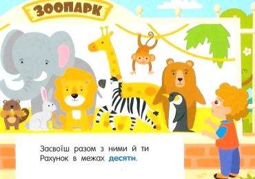 Кишенькова картонка «Лічба в зоопарку» навчить дитину рахувати в межах 10 і створить краще уявлення про зоопарк. Завдяки зручному маленькому формату книжка легко поміститься в дитячій сумочці. Отже, малеча зможе брати її із собою куди завгодно. Авторка віршів — Муренець Ольга Григорівна, досвідчена педагогиня та авторка багатьох розвивальних посібників для дітей дошкільного та шкільного віку.