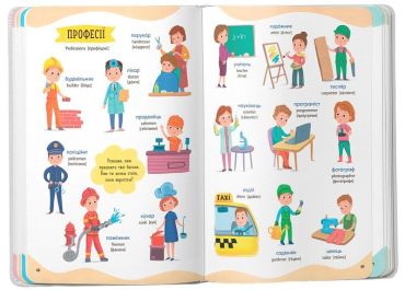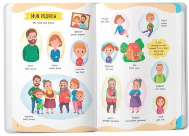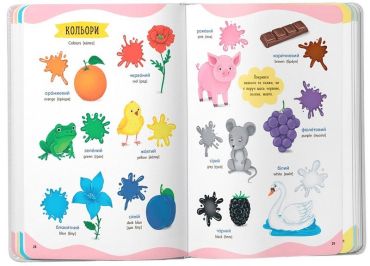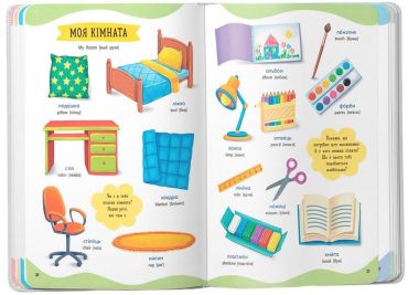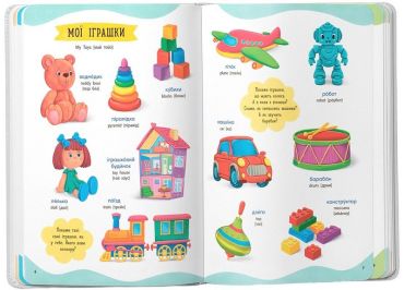 Ця книжка допоможе дитині в ігровій формі дізнатися нові слова, зробити перші кроки у вивченні навколишнього світу, розвинути мовлення та логічне мислення, навчитися чіткій та правильній вимові, розширить словниковий запас. На кожному розвороті малюк розглядатиме великі кольорові малюнки і дізнаватиметься нові слова, відшукуватиме задані предмети, відповідатиме на запитання. Підписи у книжці подано двома мовами, що дозволить прищеплювати знання англійської із самого малечку.