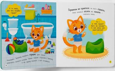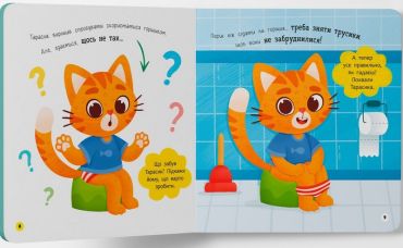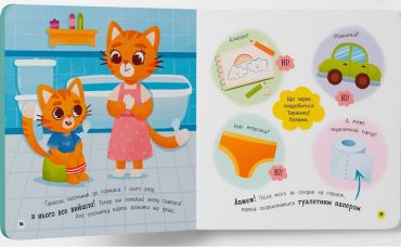 Ця інтерактивна книжка підкаже батькам, як в ігровій формі допомогти дитині звикнути до горщика. Разом з милим героєм ваш малюк засвоюватиме важливі навички: запам’ятає правильну послідовність дій — зняти штанці, сісти на горщик, скористатися туалетним папером і вимити руки. А якщо раптом не вийшло — не треба засмучуватися, варто спробувати ще. Книжка відповість на найпоширеніші дитячі запитання: навіщо йти на горщик перед сном і прогулянкою, що робити, якщо закортіло в туалет на вулиці чи в крамниці.